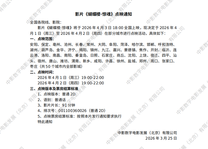 《蝴蝶楼·惊魂》发行通知