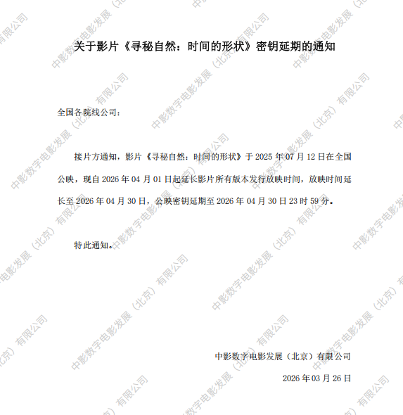 关于影片《寻秘自然:时间的形状》8次密钥延期的通知