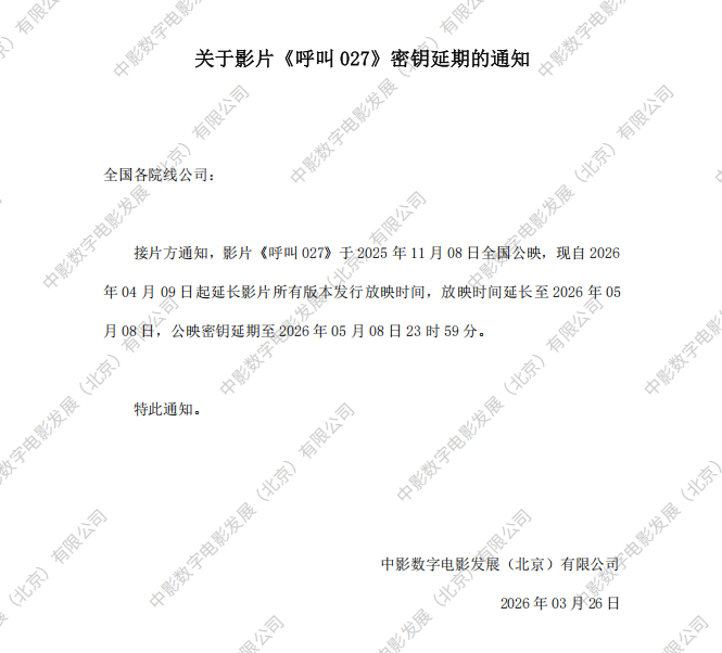 发行通知 » 《呼叫027》第五次密钥延期的通知