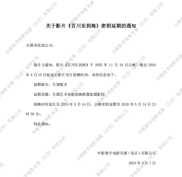 《百川东到海》第三次密钥延期的通知