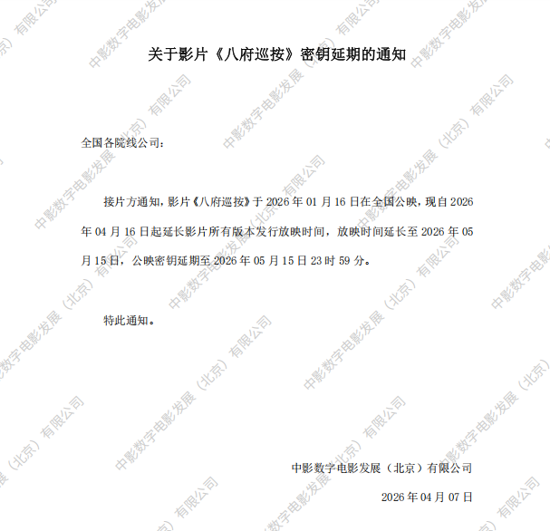 《八府巡按》第二次密钥延期的通知