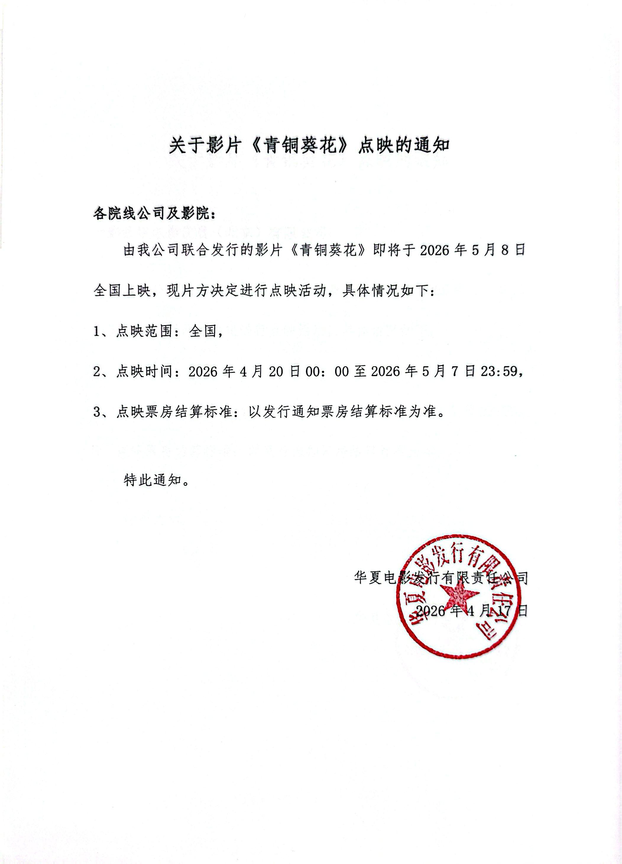 《青铜葵花》发行通知