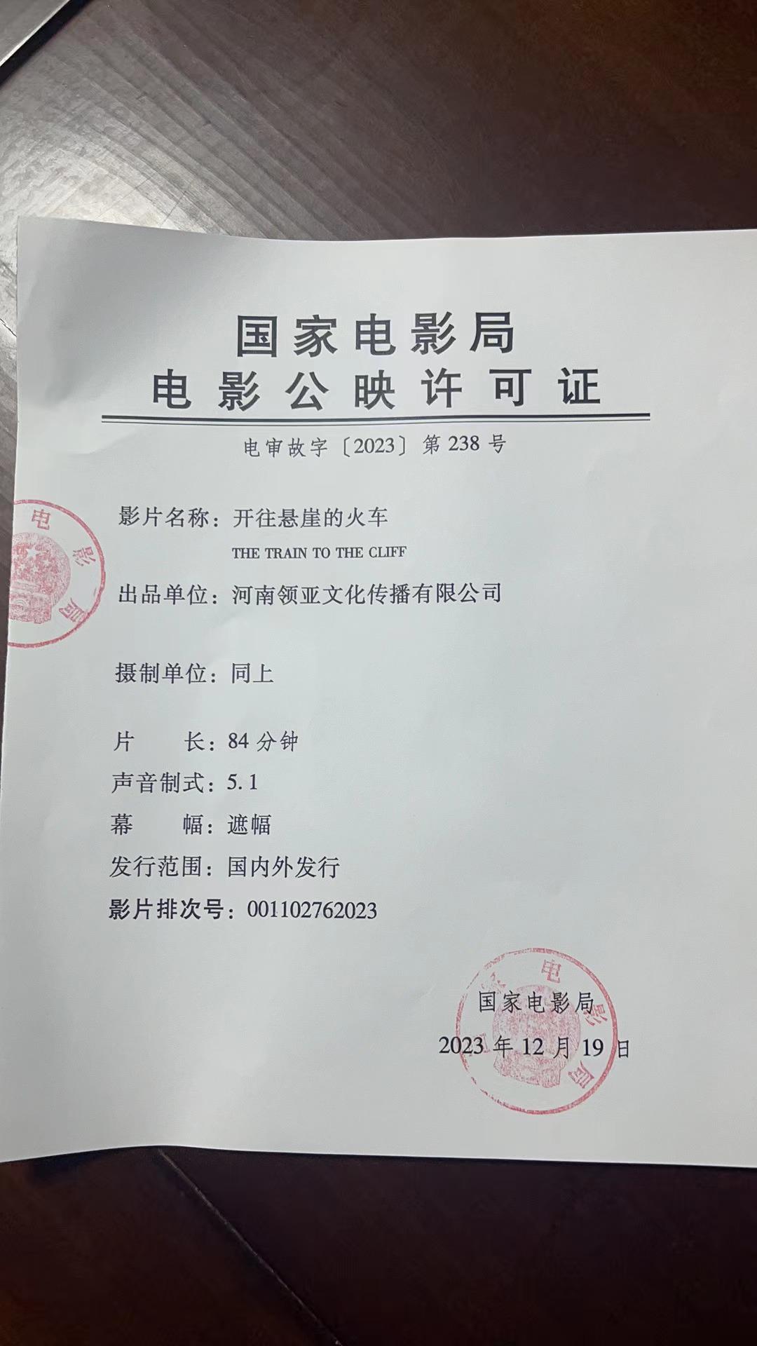 » 《开往悬崖的火车》发行通知