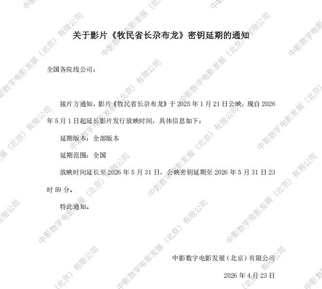 《牧民省长尕布龙》第十四次密钥延期的通知