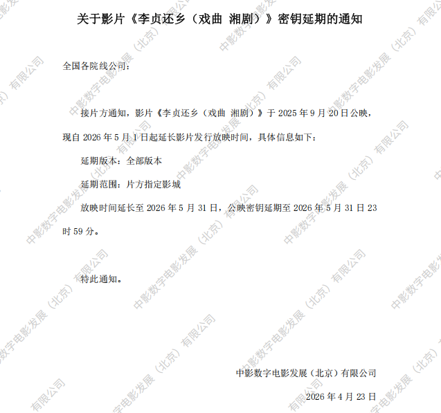 发行通知 » 《李贞还乡(戏曲 湘剧)》第七次密钥延期的通知