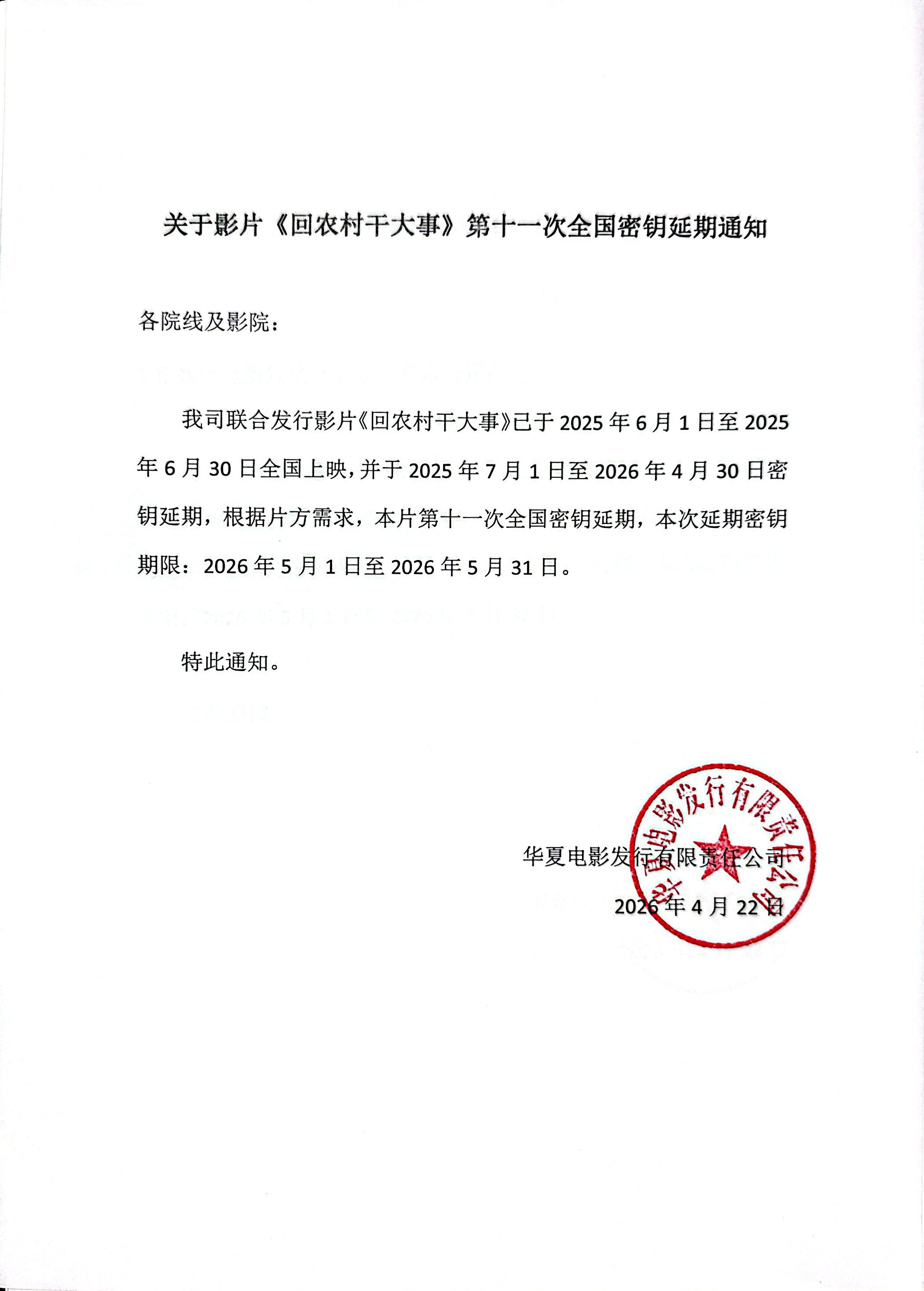 发行通知 » 《回农村干大事》第十一次全国密钥延期的通知