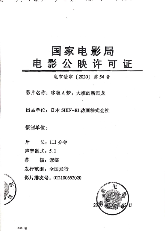外文片名:DORAEMON THE MOVIE 2020: Nobita’s NewDinosaur