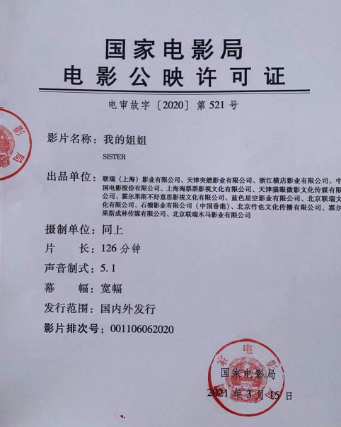 发 行:中国电影股份有限公司、上海联瑞小树苗影业有限公司、北京微梦创科网络技术有限公司、厦门联瑞影业有限公司、上海红星美凯龙影业发展有限公司、北京新影联影业有限责任公司、中影数字电影发展(北京)有限公司