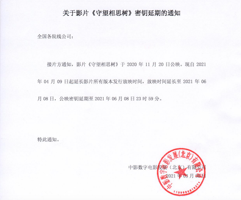 《守望相思树》密钥延期通知