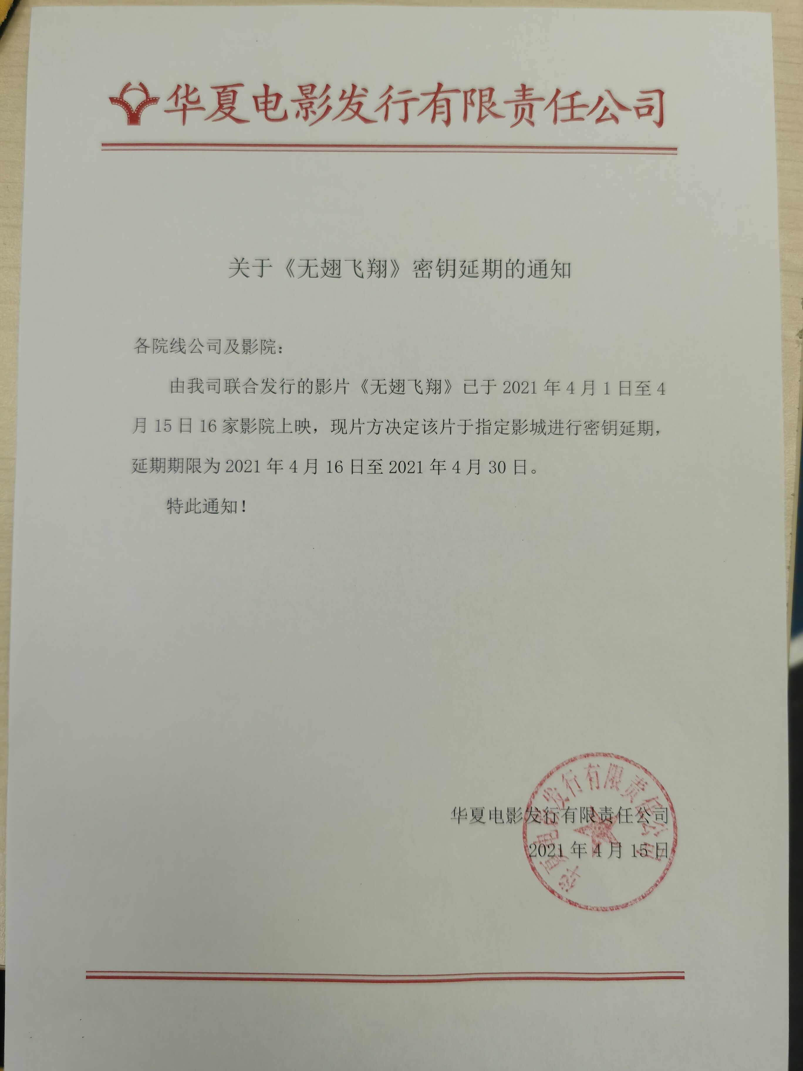 《蜜蜂的针》增加放映版本的通知