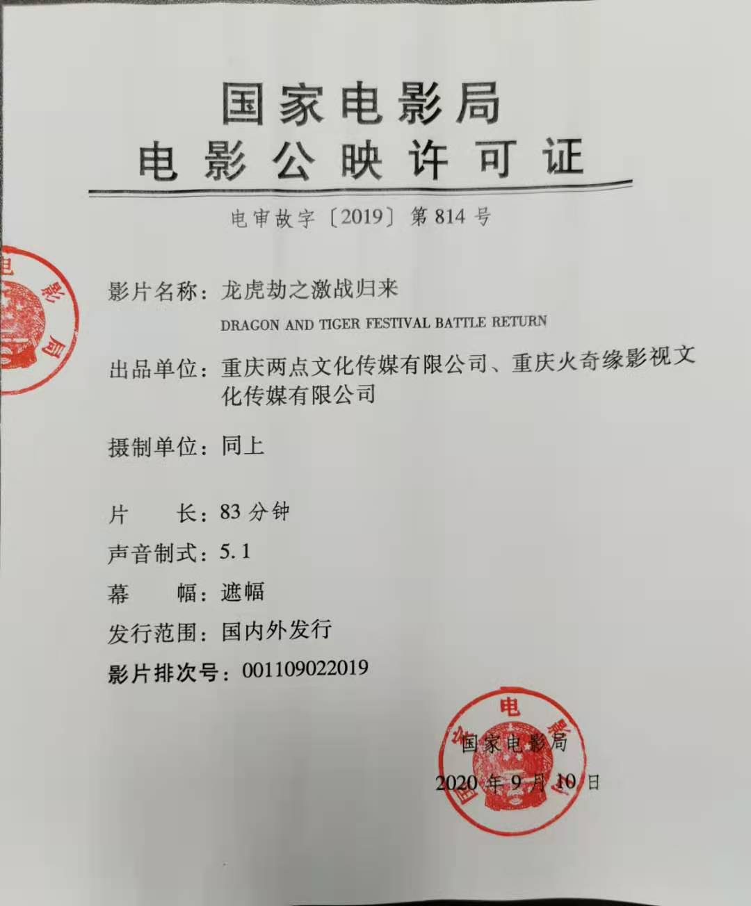 《拆弹专家2(复映)》发行通知