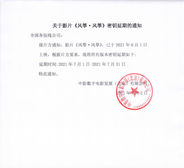发行通知 » 《风筝 · 风筝》密钥延期通知