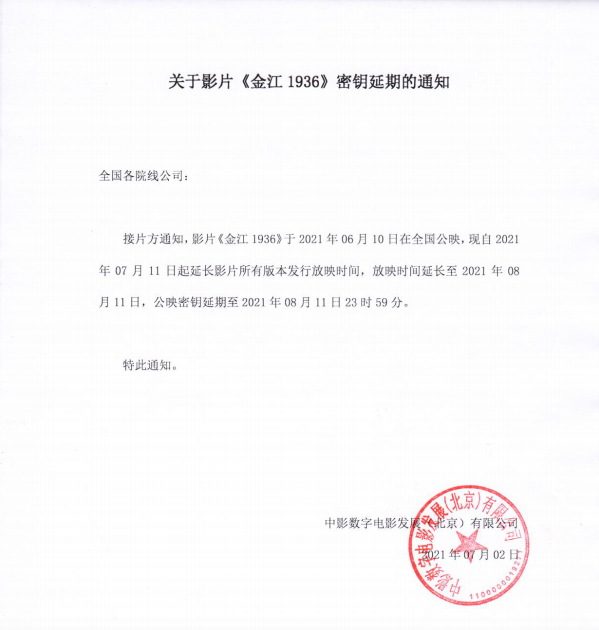 《金江1936》密钥延期通知