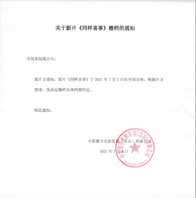 发行通知 » 《囧样喜事》撤档通知