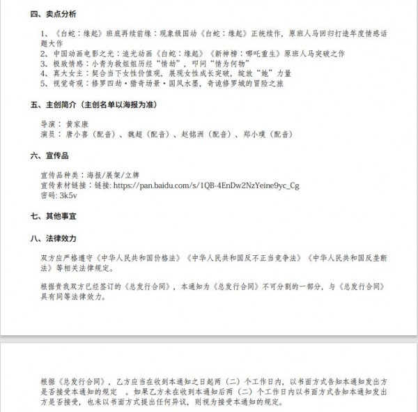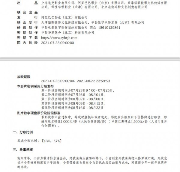 《白蛇2:青蛇劫起》密钥延期及调整票房结算标准的通知