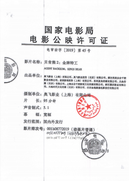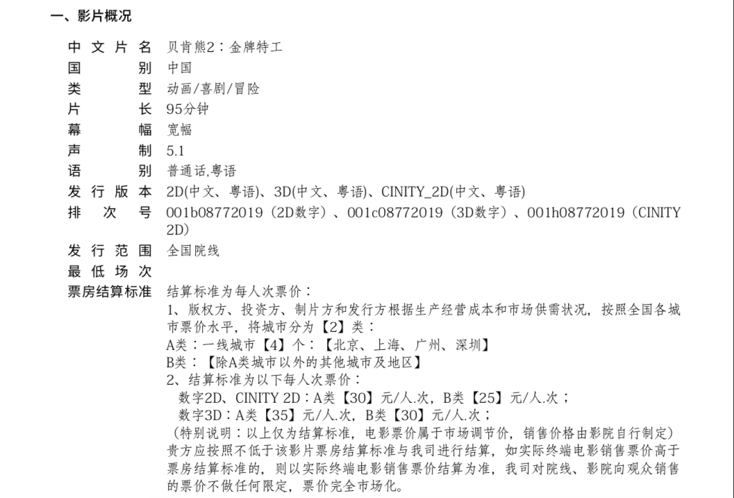 《贝肯熊2:金牌特工》密钥延期及调整票房结算标准