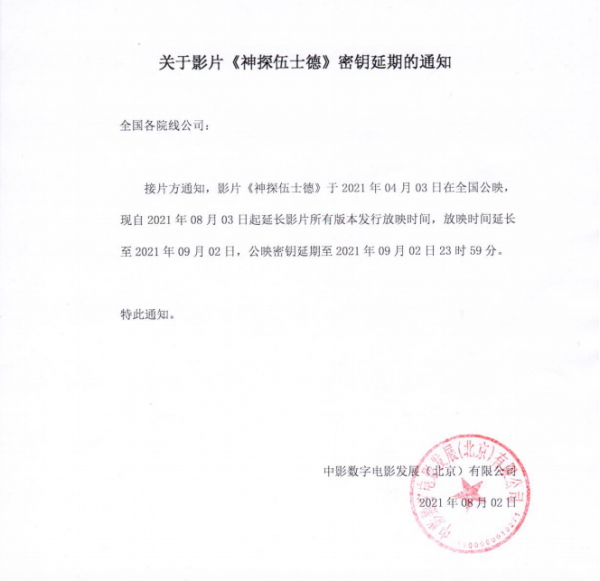 发行通知 » 《神探伍⼠德》密钥延期通知