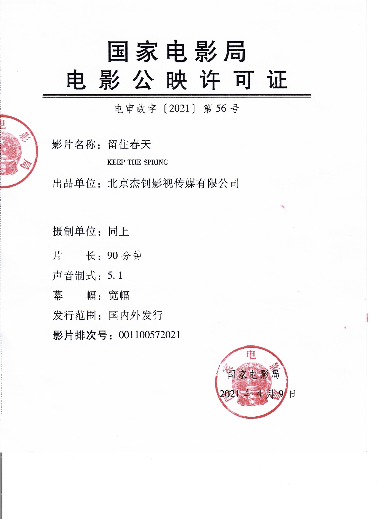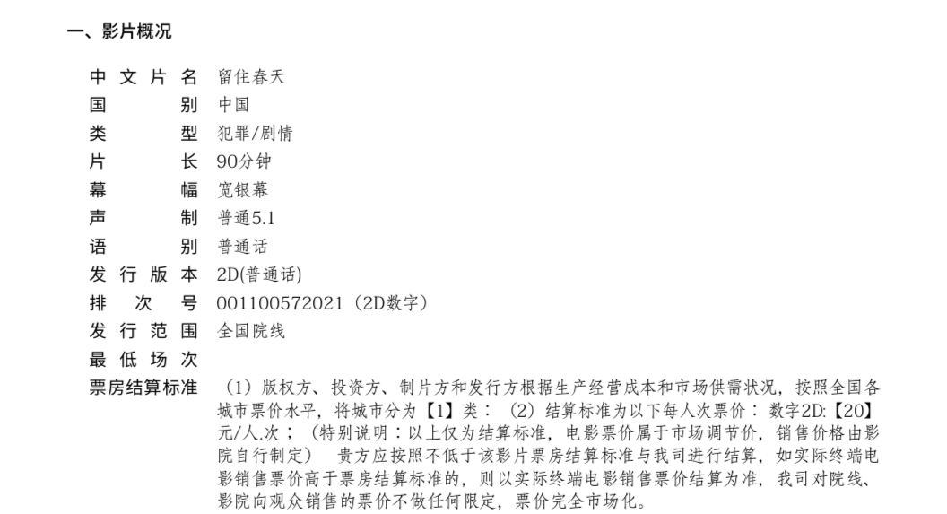 发行通知 » 《留住春天》发行通知