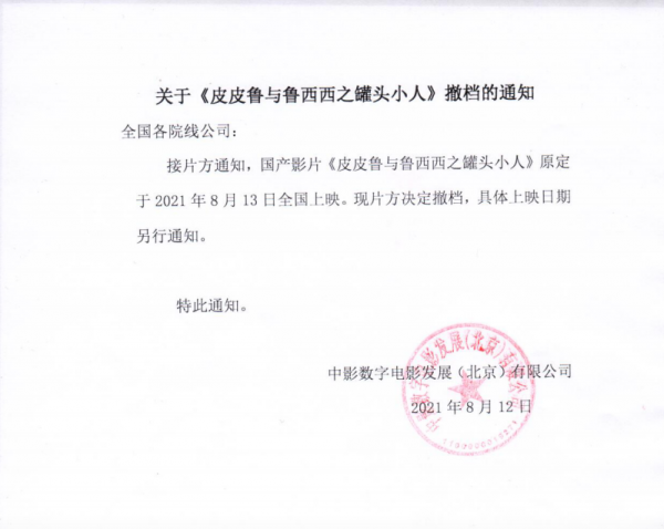 《皮皮鲁与鲁西西之罐头小人》改档通知