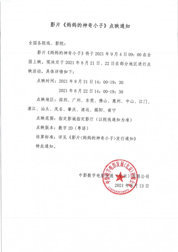 【以此为准】影片《妈妈的神奇小子》点映通知