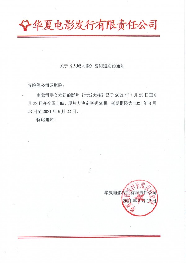 《大城大楼》密钥延期通知
