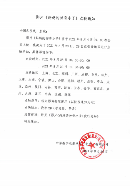 【以此为准】影片《妈妈的神奇小子》点映通知