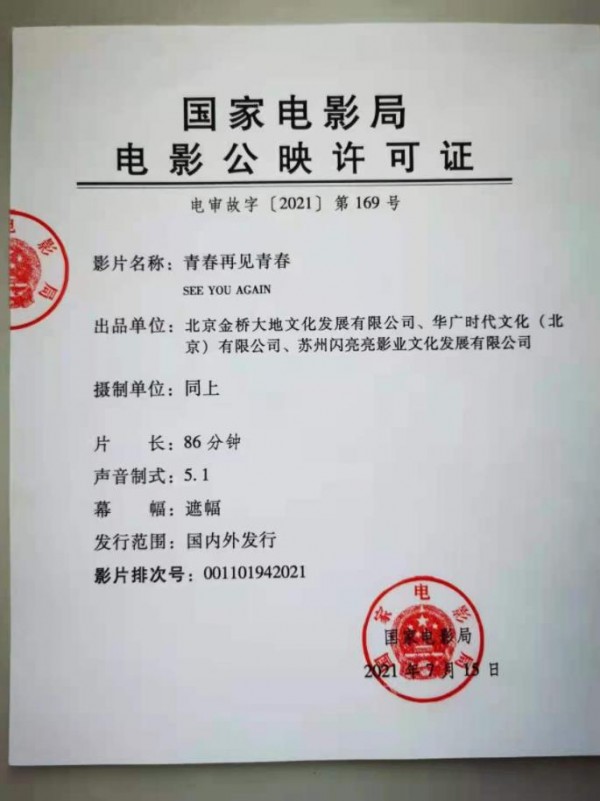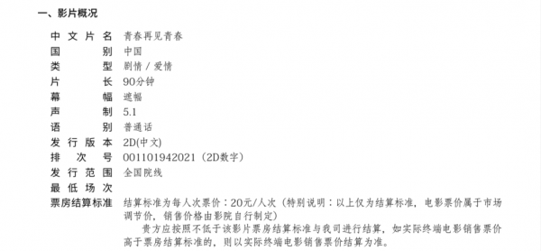 发行通知 » 《青春再见青春》发行通知