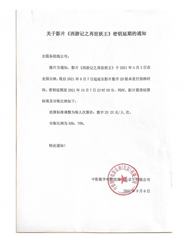 《西游记之再世妖王》发行通知
