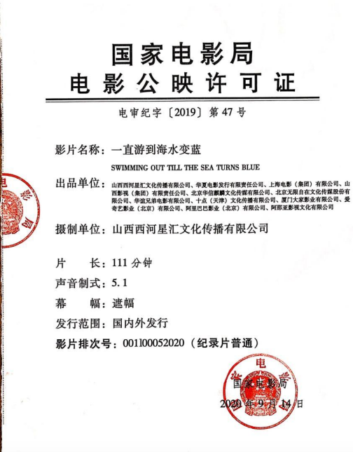 外文片名:SWIMMING OUT TILL THE SEA TURNS BLUE
