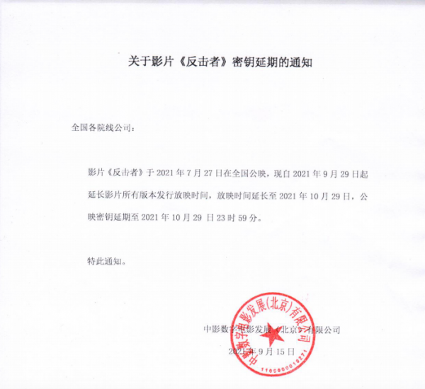 《反击者》密钥延期通知