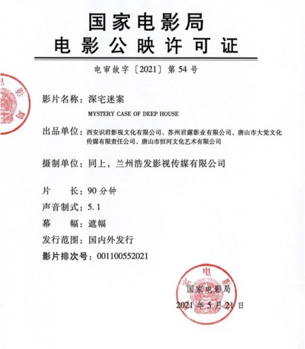 发行通知 » 《深宅迷案》发行通知