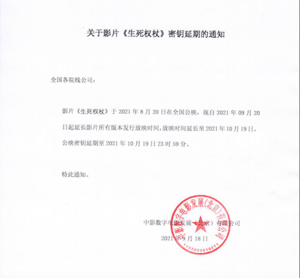 《生死权杖》密钥延期的通知