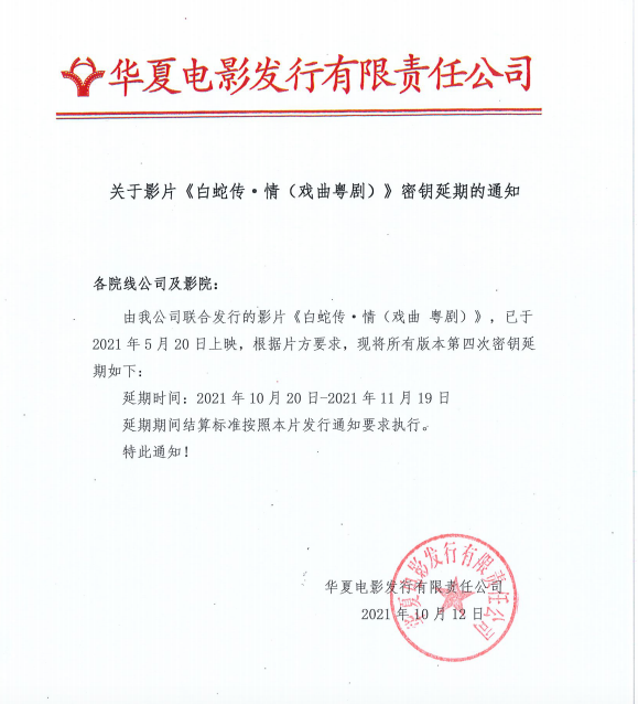 《白蛇传·情》第十三次密钥延期的通知