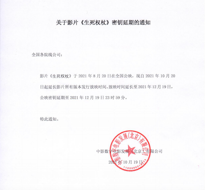 《生死权杖》密钥延期的通知