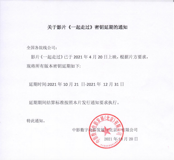 《一起走过》密钥延期通知