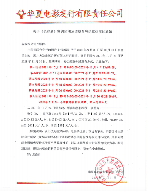 关于《长津湖》密钥延期的通知