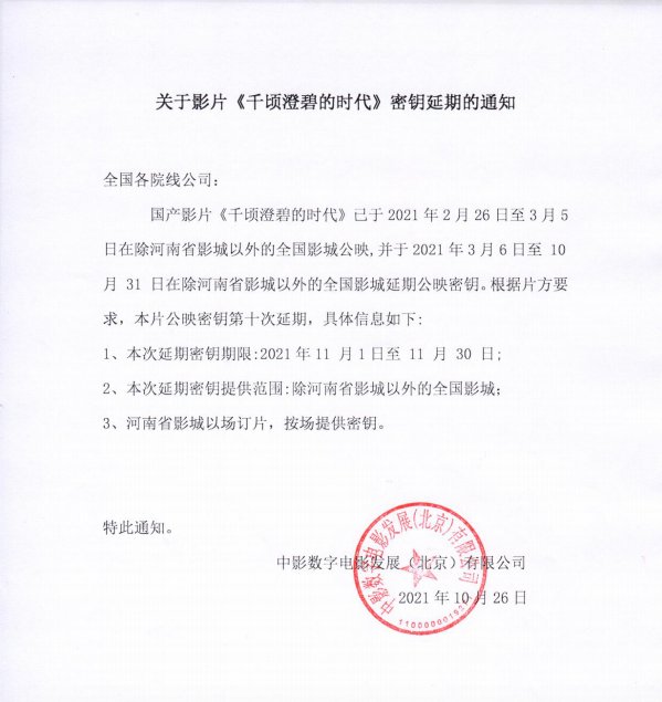 《千顷澄碧的时代》第十次密钥延期通知