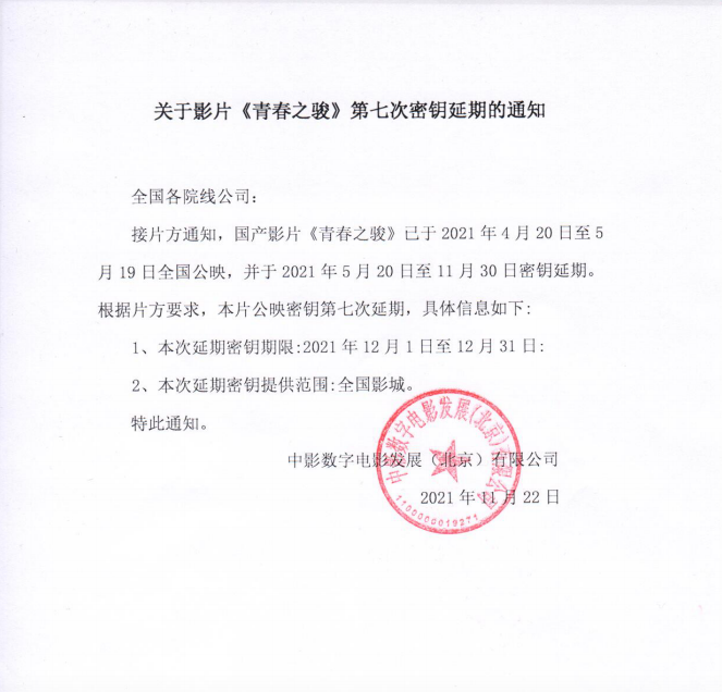 《青春之骏》密钥延期通知