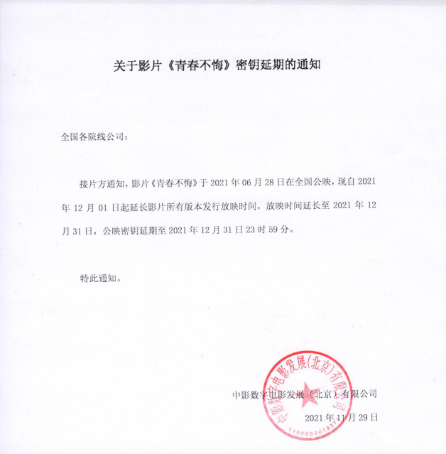 发行通知 » 《青春不悔》密钥延期通知