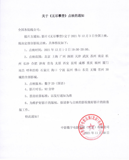 《无尽攀登》点映的通知