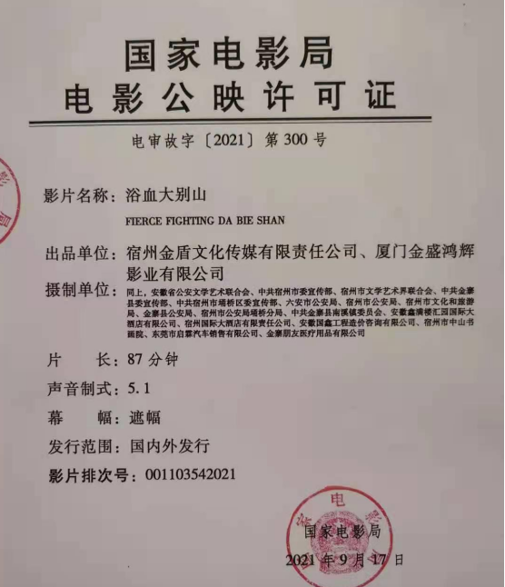 出 品:宿州金盾文化传媒有限责任公司、厦门金盛鸿辉影业有限公司