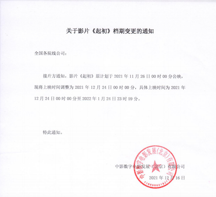 《起初》撤档的通知