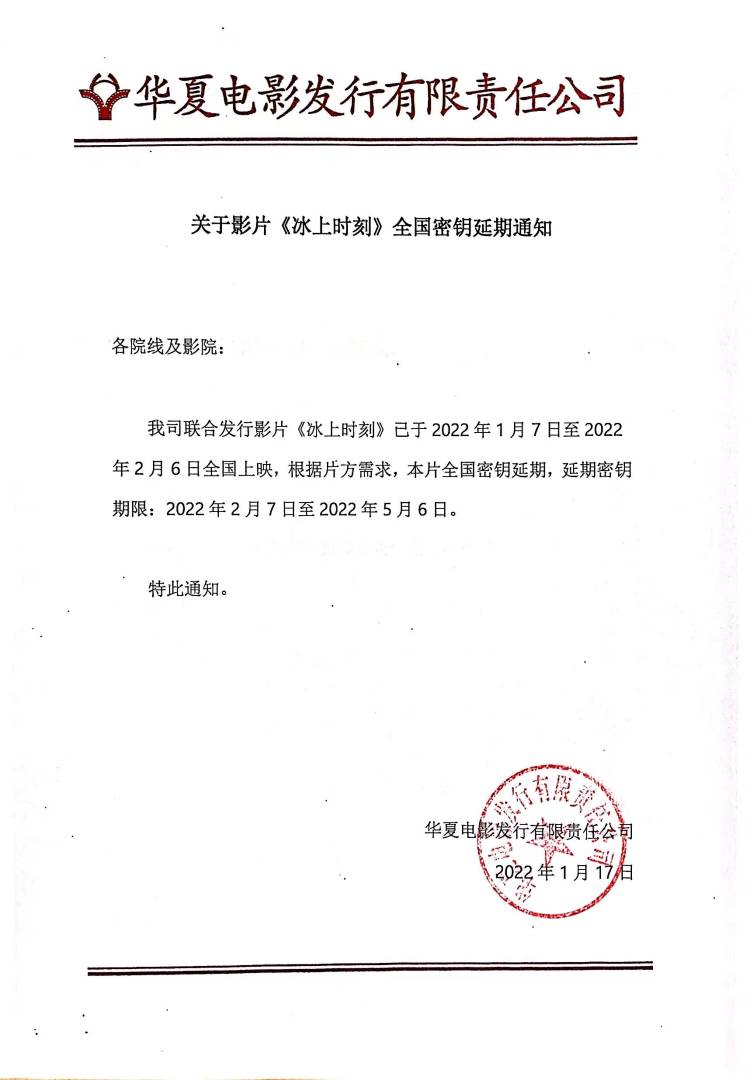 《冰上时刻》第二次全国密钥延期的通知