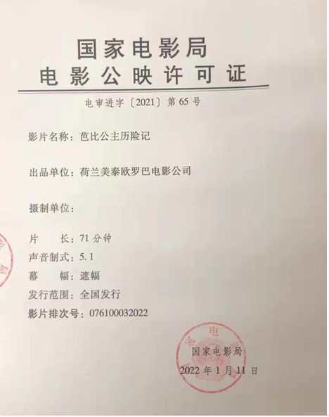 《芭比公主历险记》发行通知