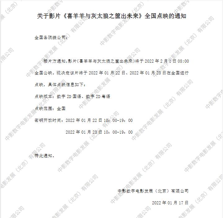 《喜羊羊与灰太狼之筐出未来》发行通知