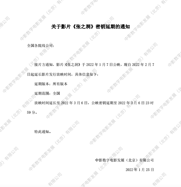 《张之洞》密钥延期的通知