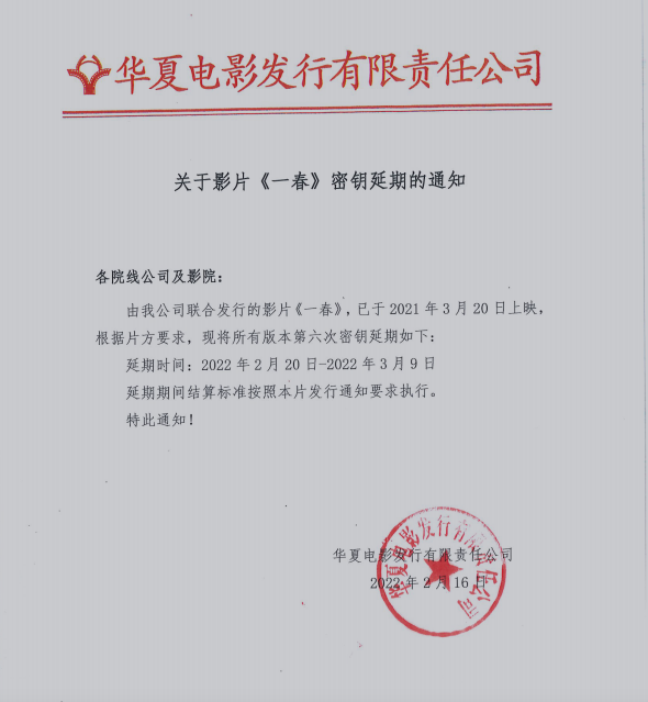 《一春》密钥延期通知