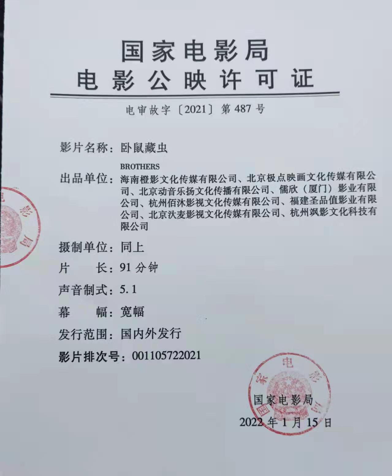 关于影片《卧鼠藏虫》第三次密钥延期的通知