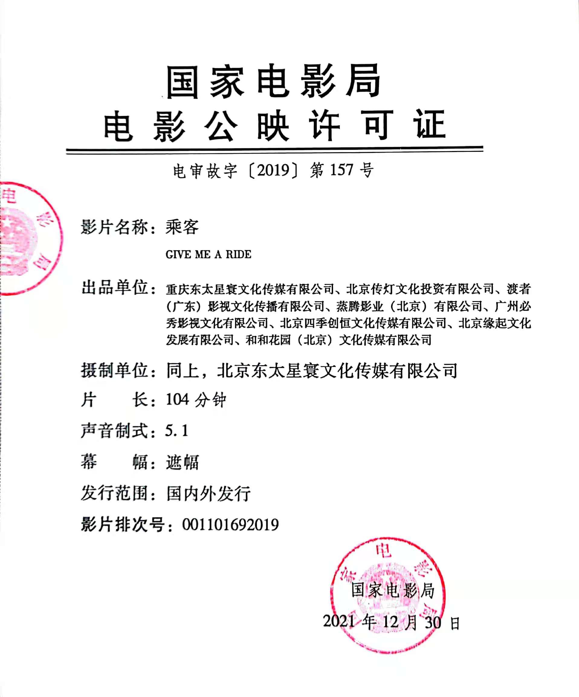 《乘客》密钥延期的通知