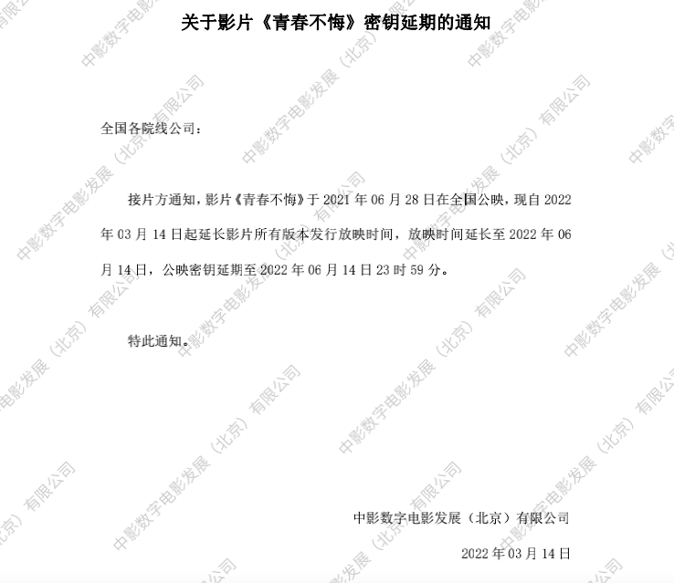 发行通知 » 《青春不悔》密钥延期的通知